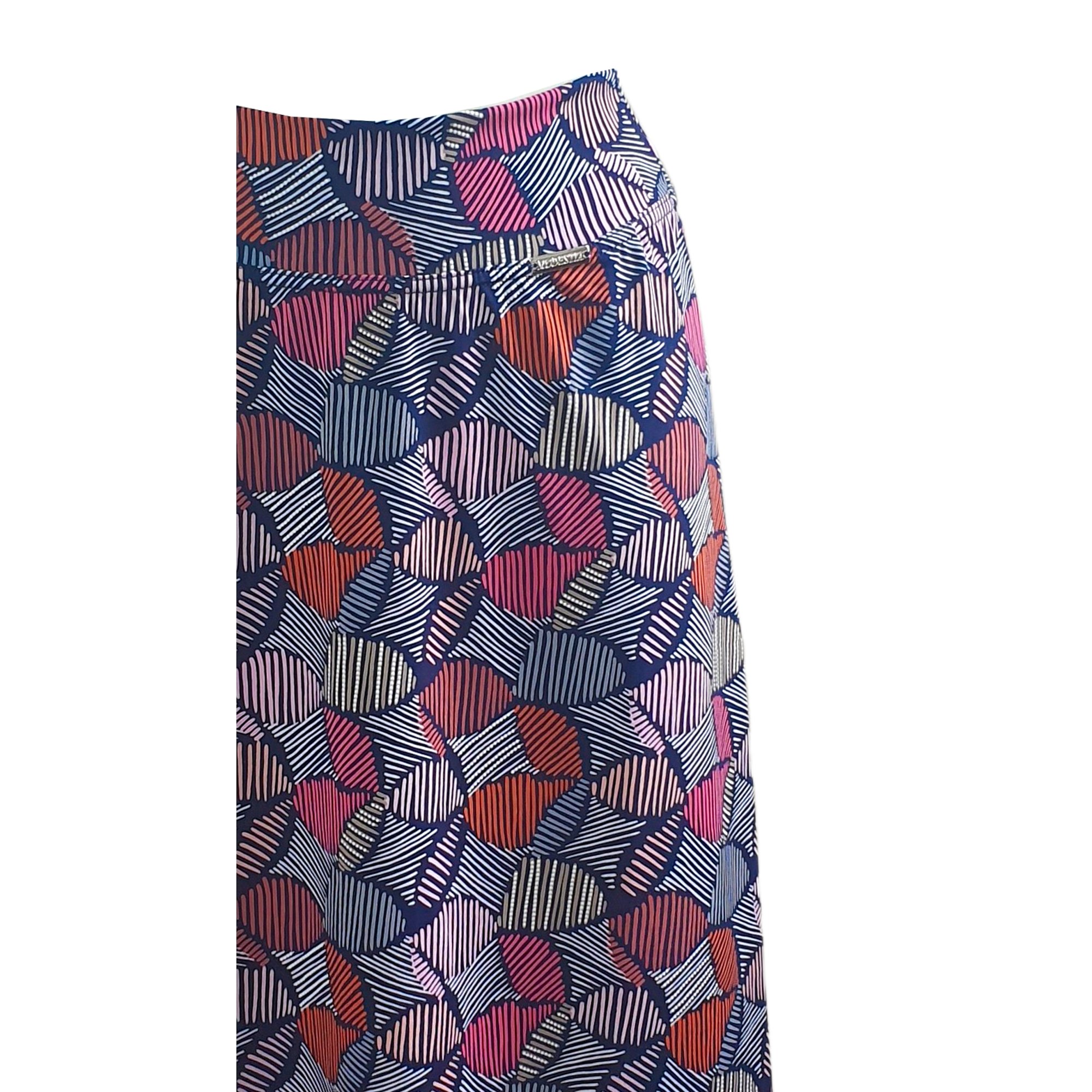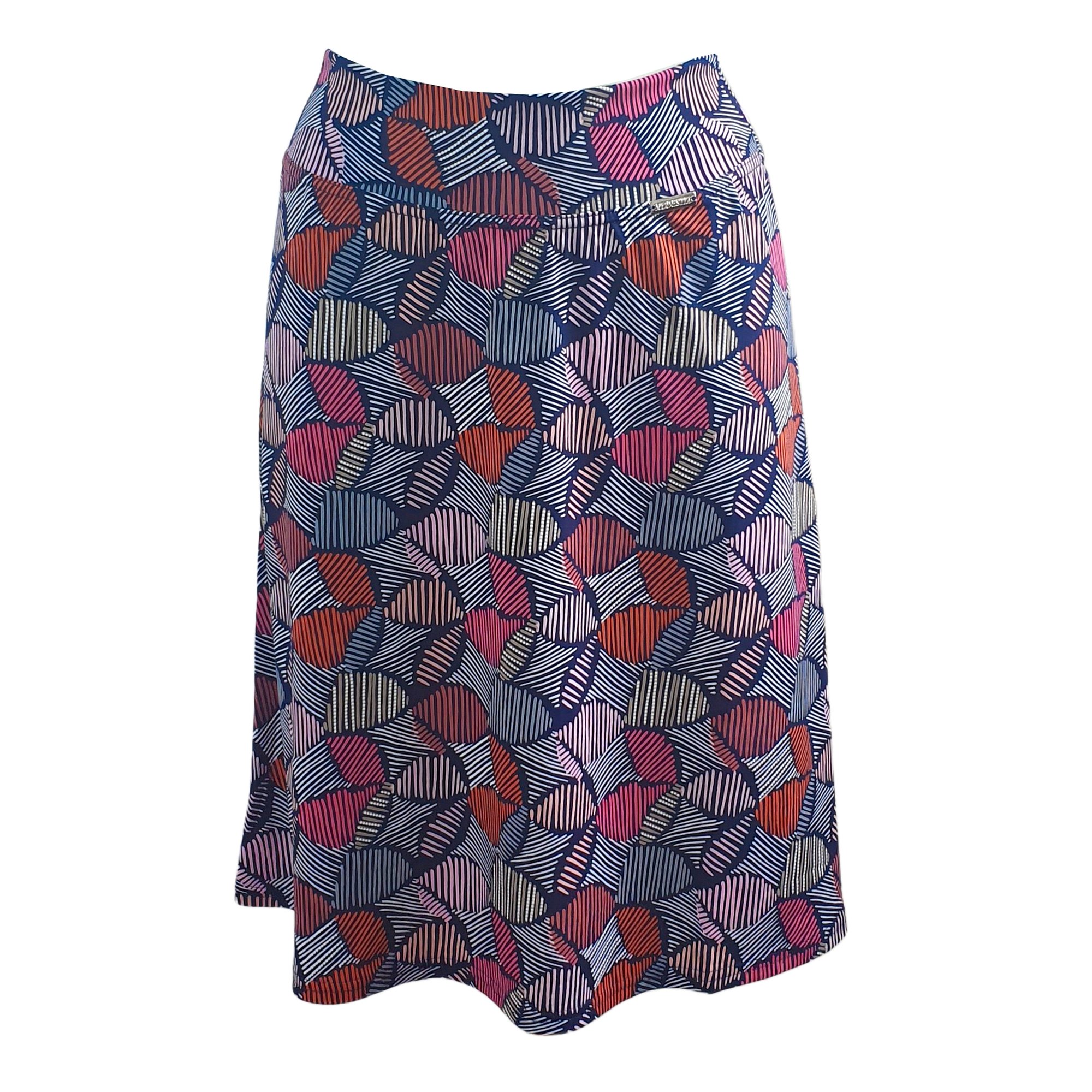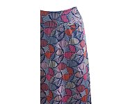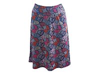 Krátká letní sukně střižená do A s barevným tiskem. Zajímavě řešená elastická pasovka. Délka 60 cm. Údržba - praní na 30° v pračce. 95% polyester 5% elastan