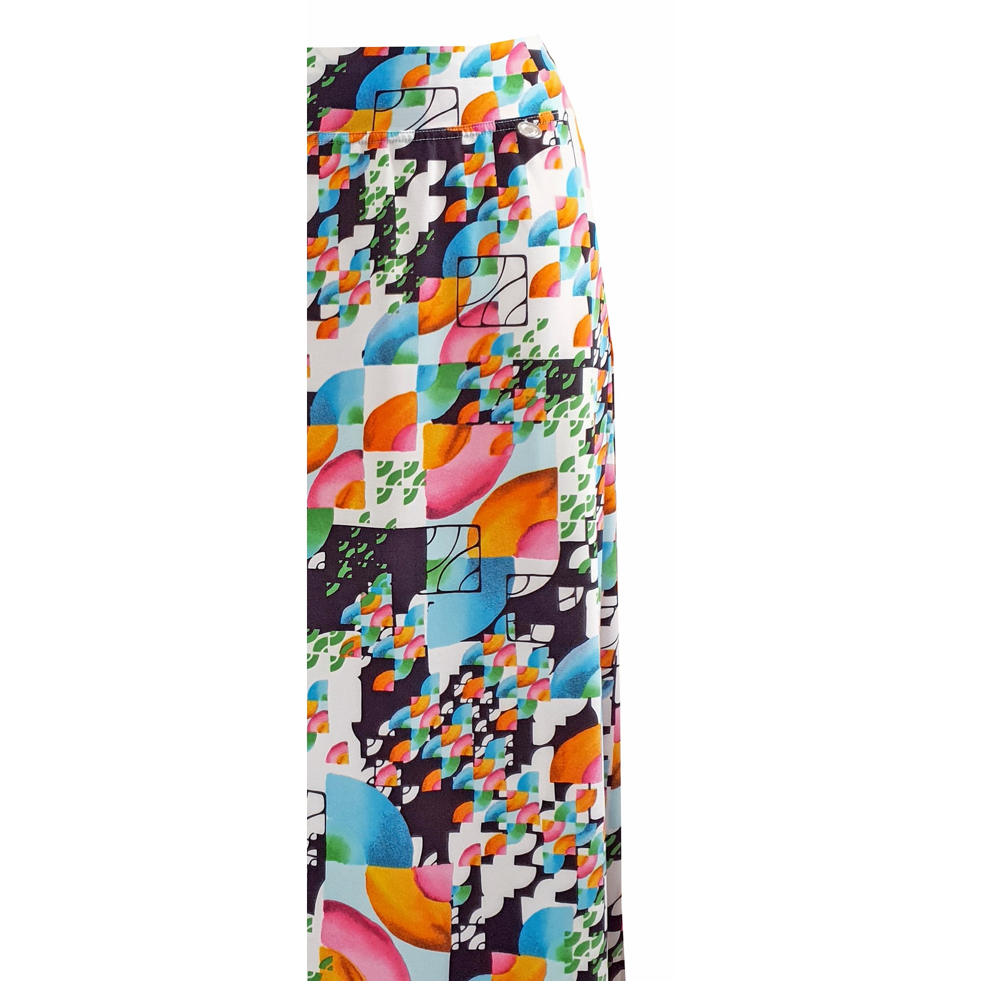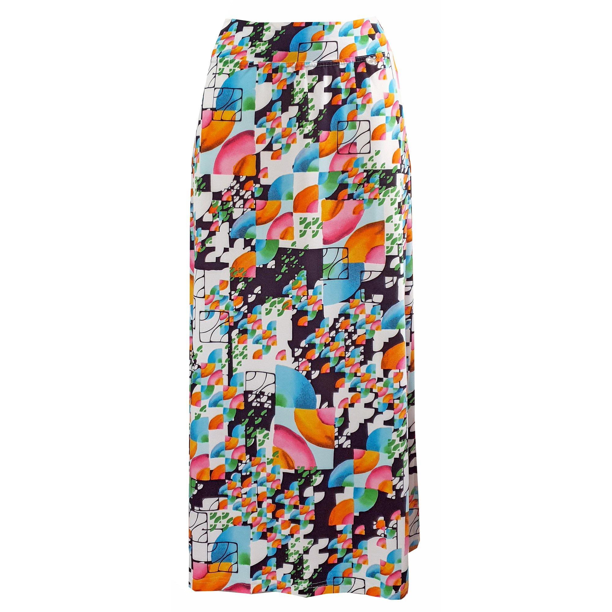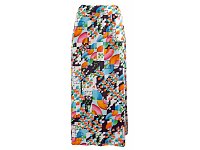 Dlouhá letní sukně s tiskem. Zajímavě řešená elastická pasovka. Délka 90 cm. Údržba - praní na 30° v pračce. Materiál: 95% polyester 5% elastan