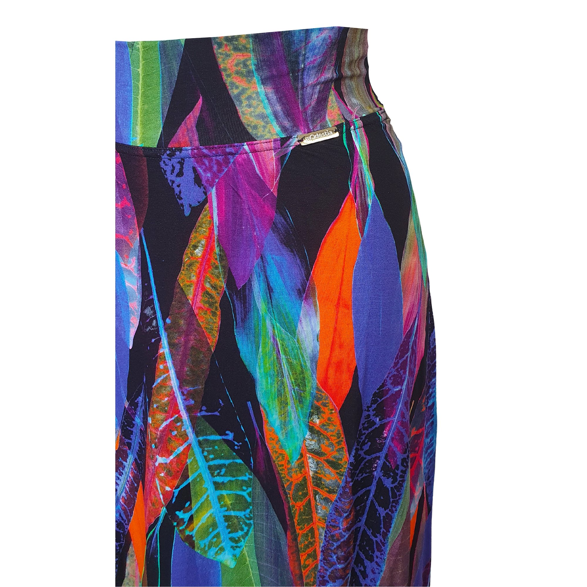 Barevná sukně s elastickým pasem Délka 70 cm. Pereme v pračce na 30°. Materiál: 95% viskóza 5% elastan