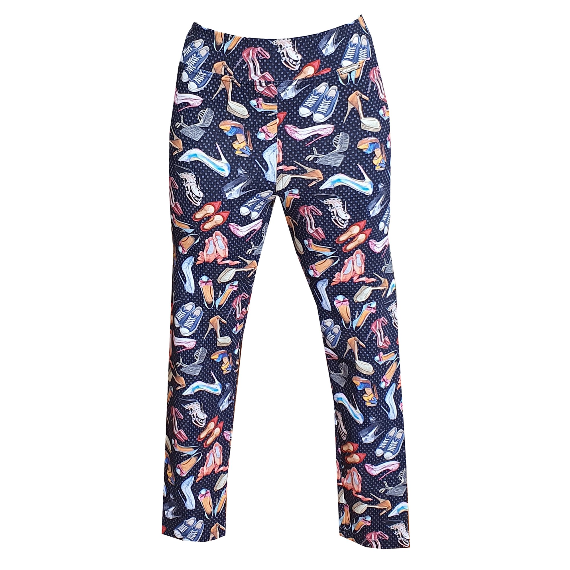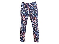 Elastické legíny ke kotníkům s vysokým pasem a krásným tiskem pantoflíčků na modré barvě. Praní na 30°. Materiál: 95% bavlna 5% elastan