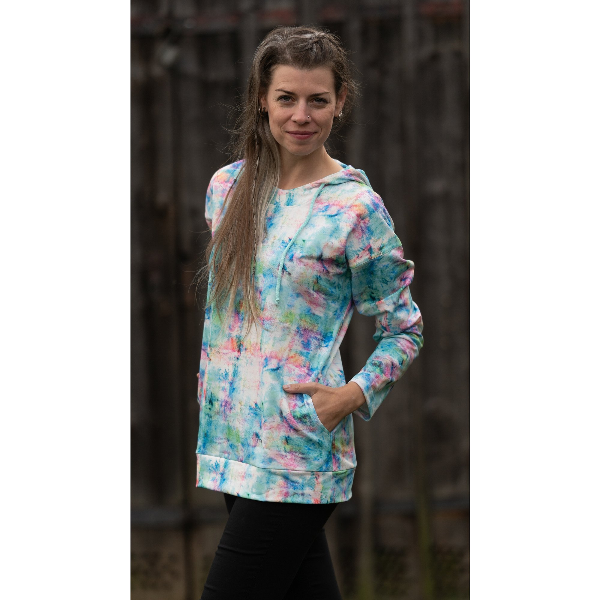 Varianta: Barevné triko s kapucí - vel.38
