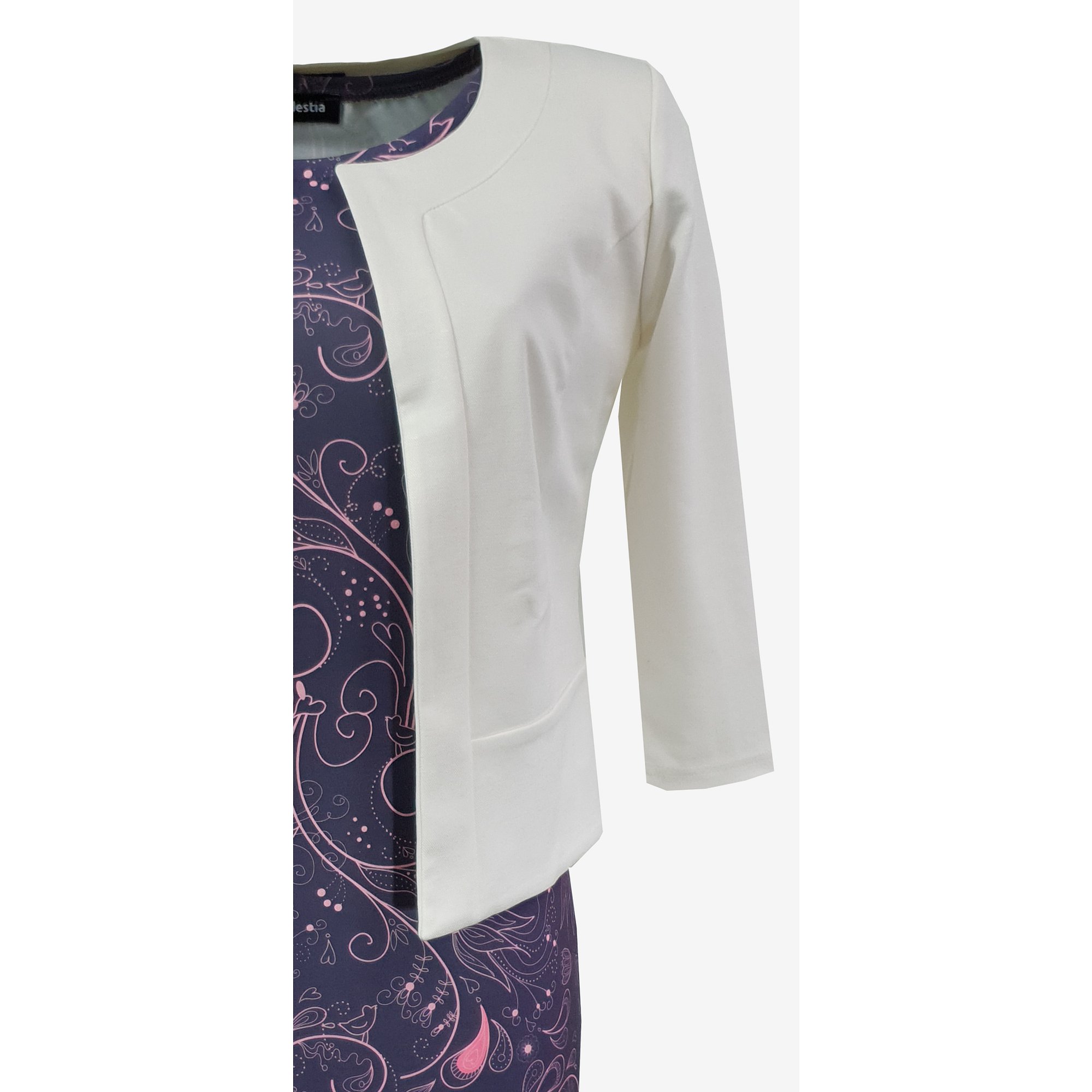 Krátké bolerko vhodné do společnosti i na běžné nošení ve světlé smetanové barvě. 3/4 rukáv. Pereme v pračce na 30°. Materiál: 74% polyester 21% viskóza 5% elastan