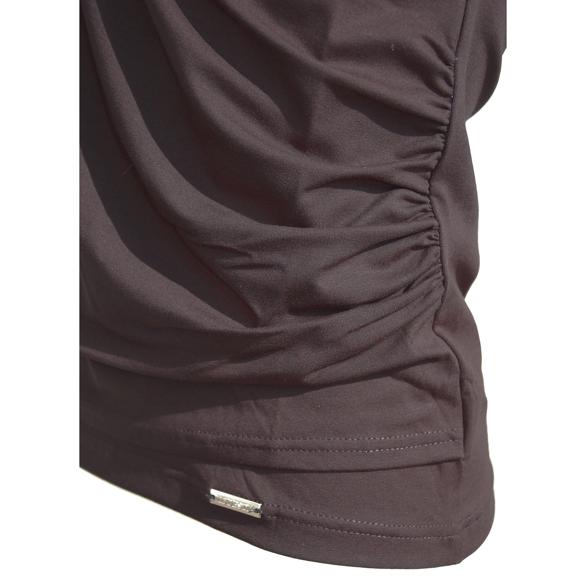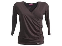 Zajímavě řešená halenka s 3/4 rukávem, na prsou překřížená, zavinovací vzhled. Po levé straně nařasené. Délka u vel. 38 je 58 cm, stupňování ve vel. po 1,5 cm. Materiál: 95 % viskóza 5 % elastan