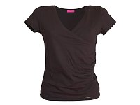 Zajímavě řešené tričko, krátký rukáv, na prsou překřížené, zavinovací vzhled. Po levé straně nařasené. Délka u vel. 38 je 58 cm, stupňování ve vel. po 1,5 cm. Materiál: 95 % viskóza 5 % elastan