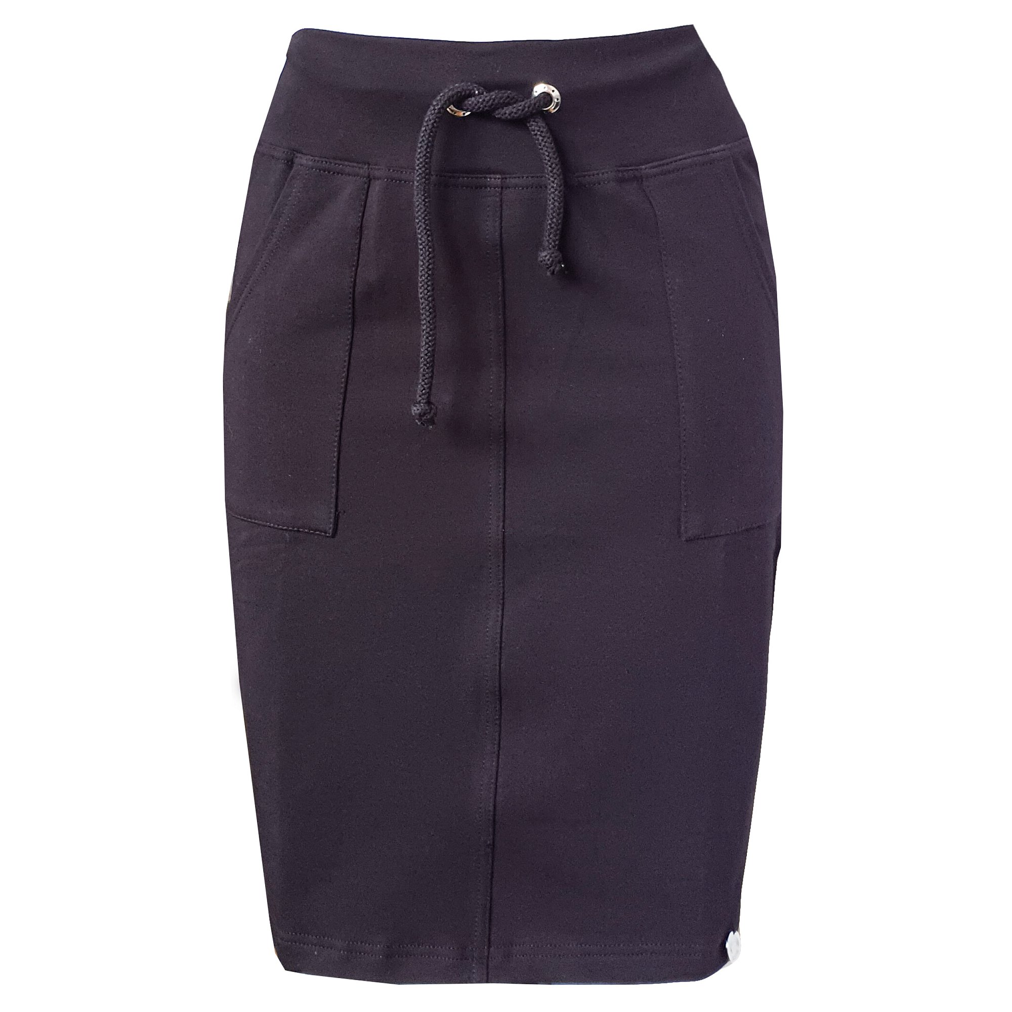 Rovná volnočasová sukně s našitými kapsami a šňůrou v pase. Celková délka včetně pasu je 52 cm. Pereme v pračce na 30°. Materiál: 97% bavlna 3% elastan