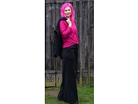 Dámské pohodlné kalhoty v černé barvě zaujmou svým širokým střihem. V pase mají praktickou šňůrku na zavazování a přizpůsobení velikosti podle potřeb. Délka 105 cm. Materiál: 74% polyester, 21% viskóza, 5% elastan