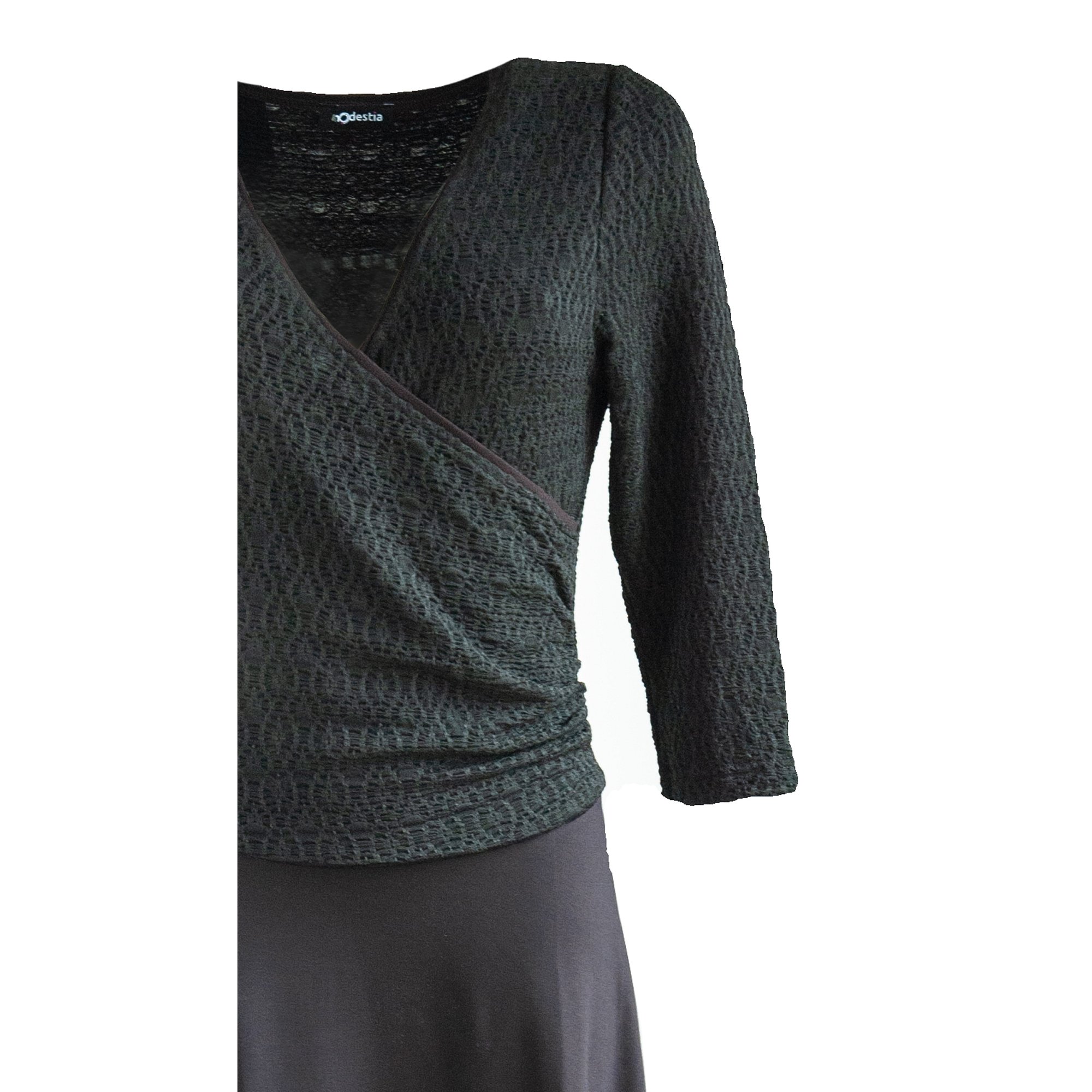 Krásné elegantní černé šaty s vyplétaným překříženým, nabraným vrchním dílem a širokou hladkou sukní. Přestřižené v pase. Délka 110 cm. Pereme v pračce na 30°. Materiál: 74% polyester 21% viskóza 5%