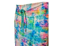 Dámská sukně s abstraktním vzorem v modro-hnědých odstínech s efektem struktury.Rovný, mírně přiléhavý střih, který zvýrazní postavu. Elastický pas se šňůrkou. Délka 54 - 57 cm dle vel. Materiál: 73% polyester, 21% viskóza, 6% elastan.