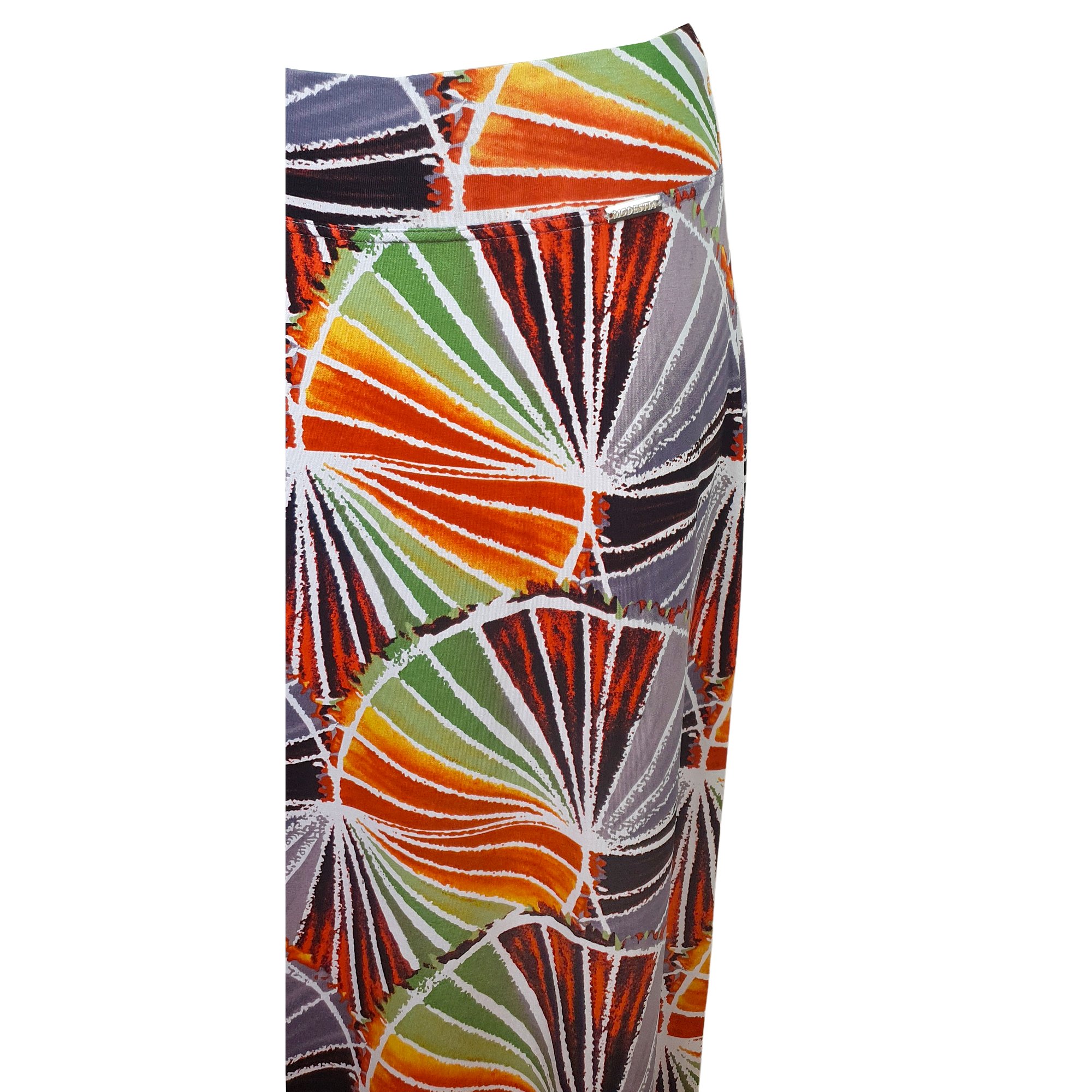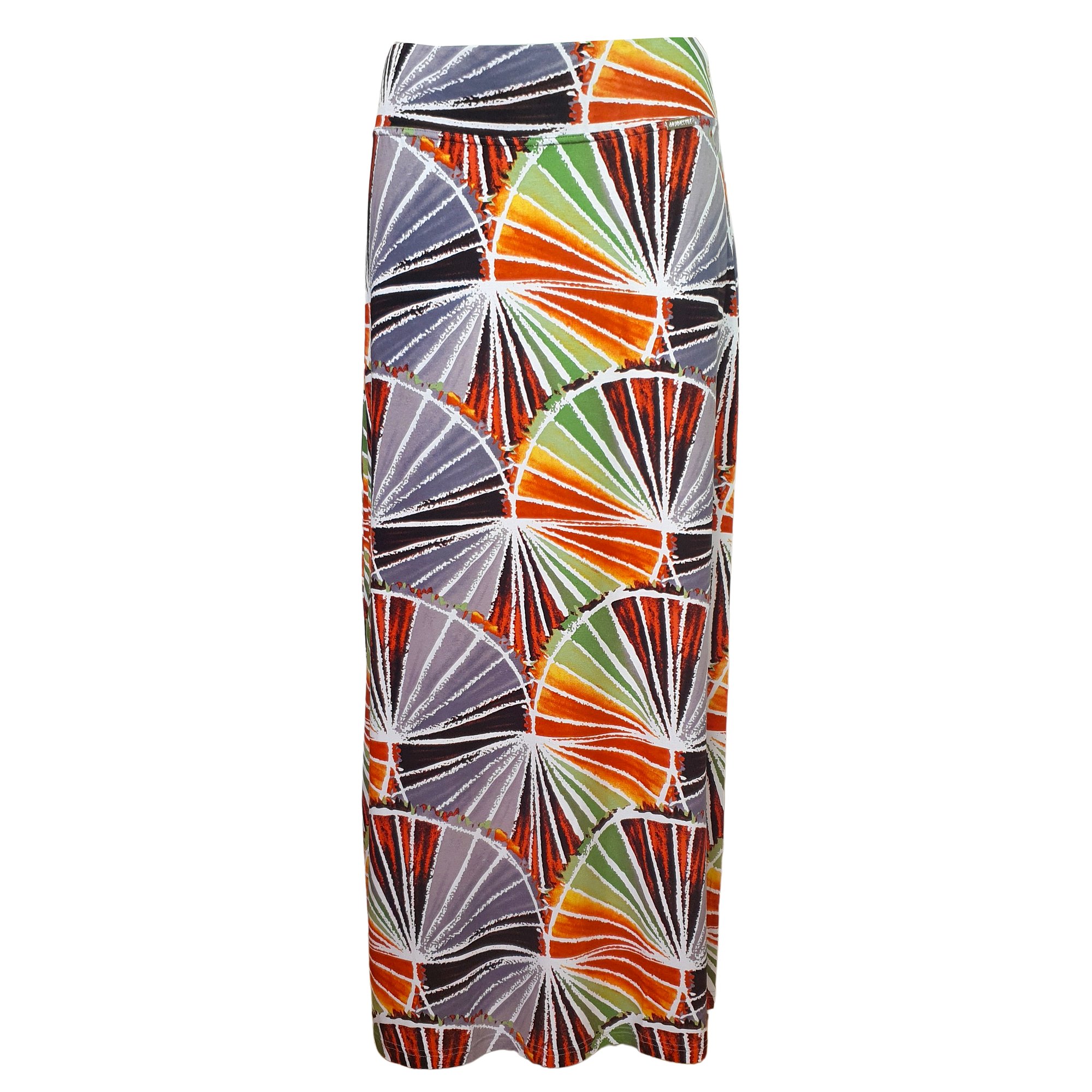 Dlouhá letní barevná sukně s tiskem . Zajímavě řešená elastická pasovka. Délka 90 cm. Údržba - praní na 30° v pračce. 95% viskóza 5% elastan