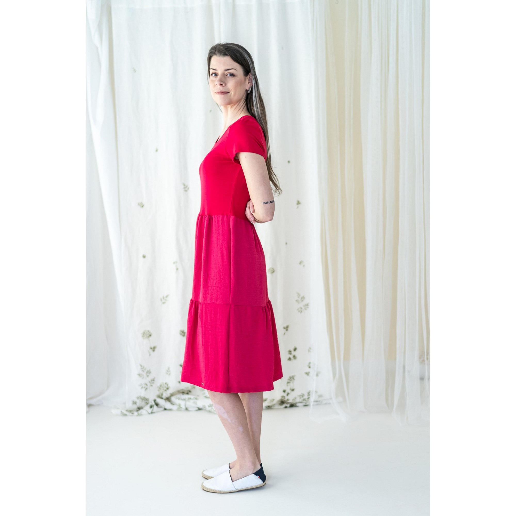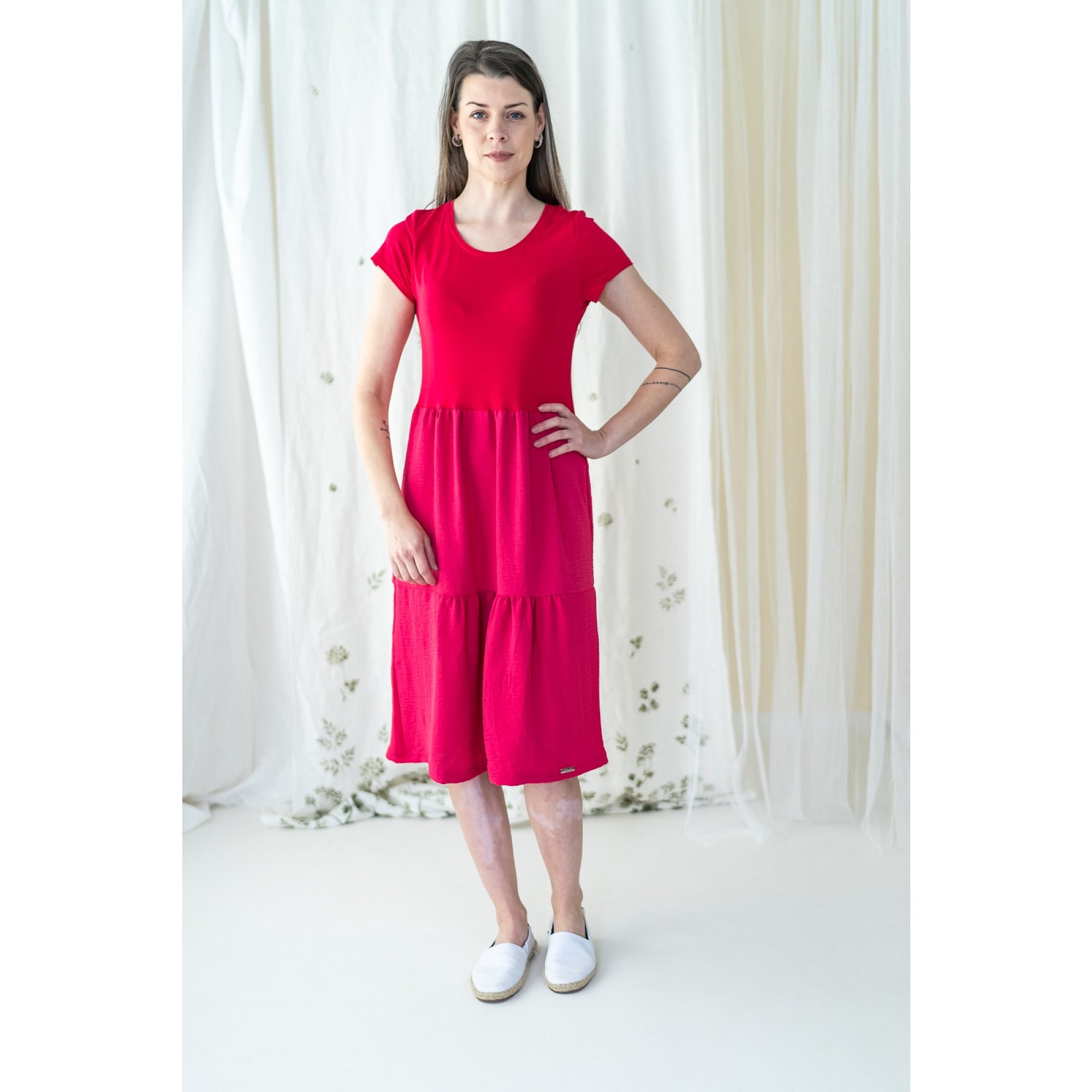 Varianta: Kaskádové šaty v jahodové barvě - vel.38