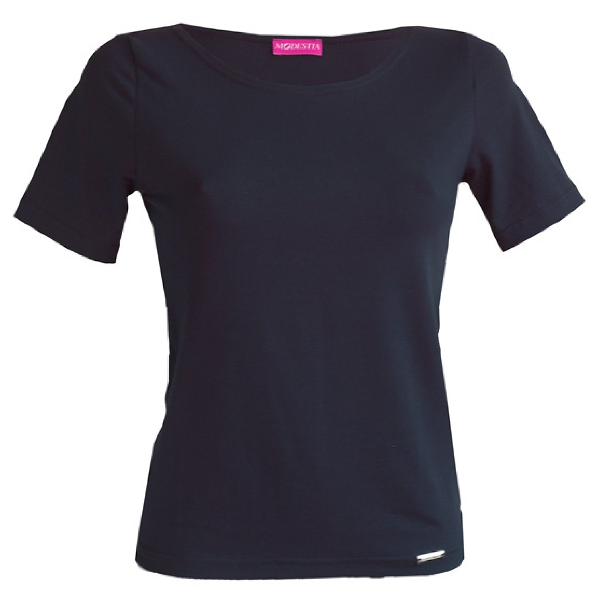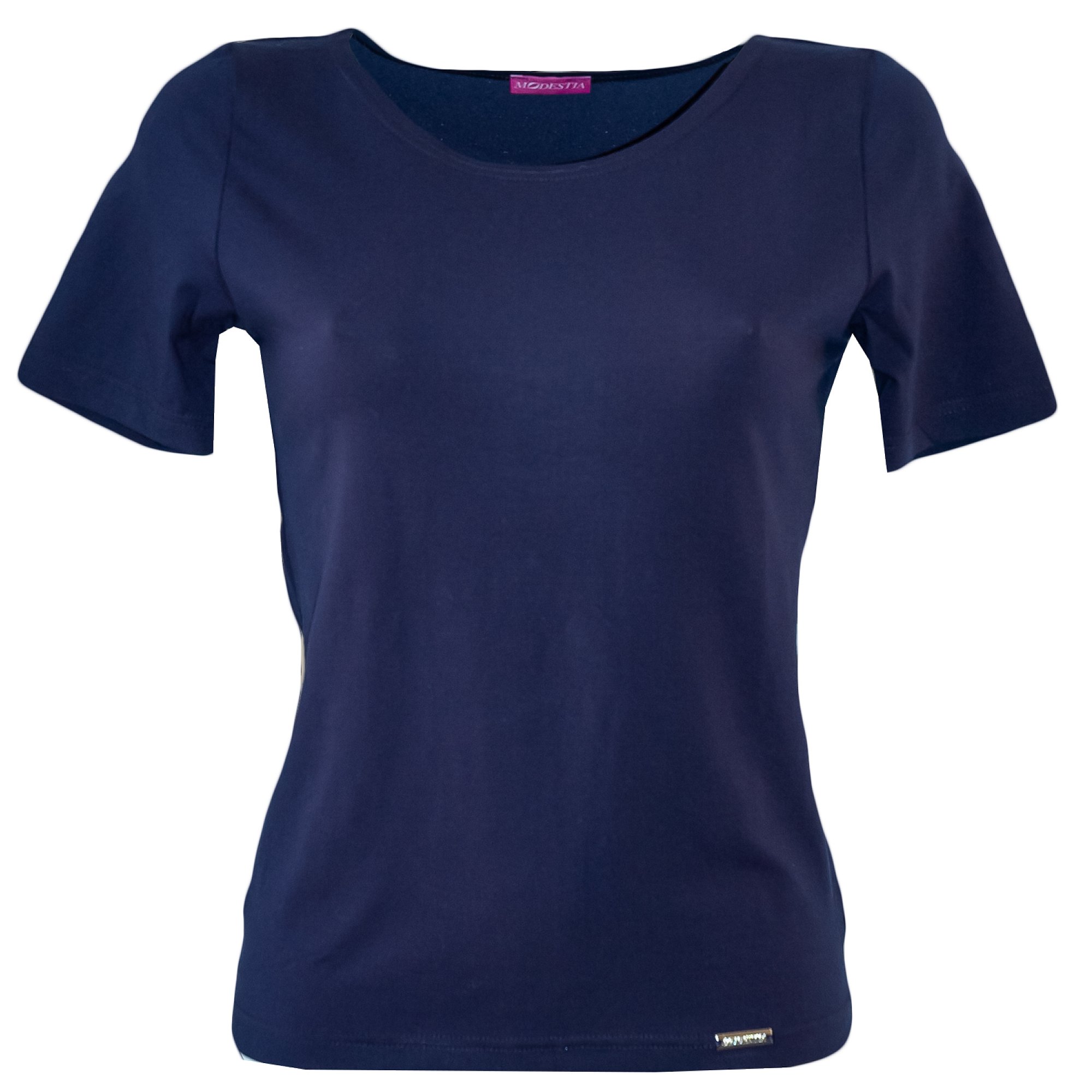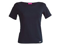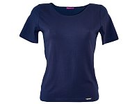 Jednoduchá, hladká halenka s krátkým rukávem v tmavěmodré barvě.