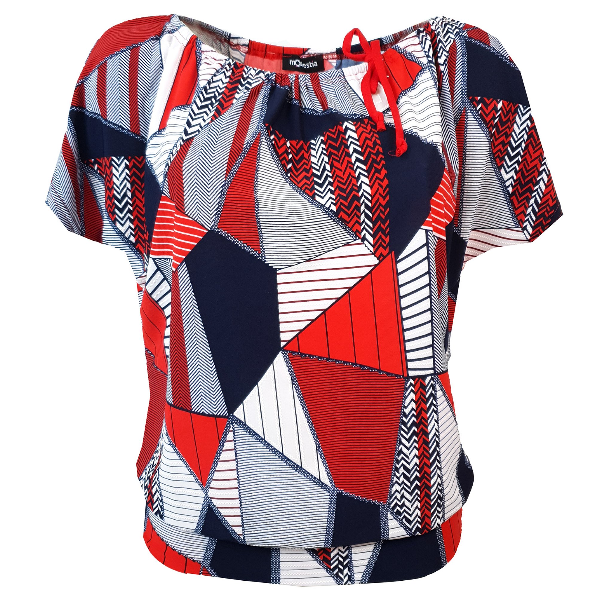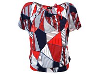 Volná halenka, ve výstřihu stažená do šňůrky. Na spodní části dvojitý lem. Spadlý volný rukáv. Materiál: 95% viskóza 5% elastan