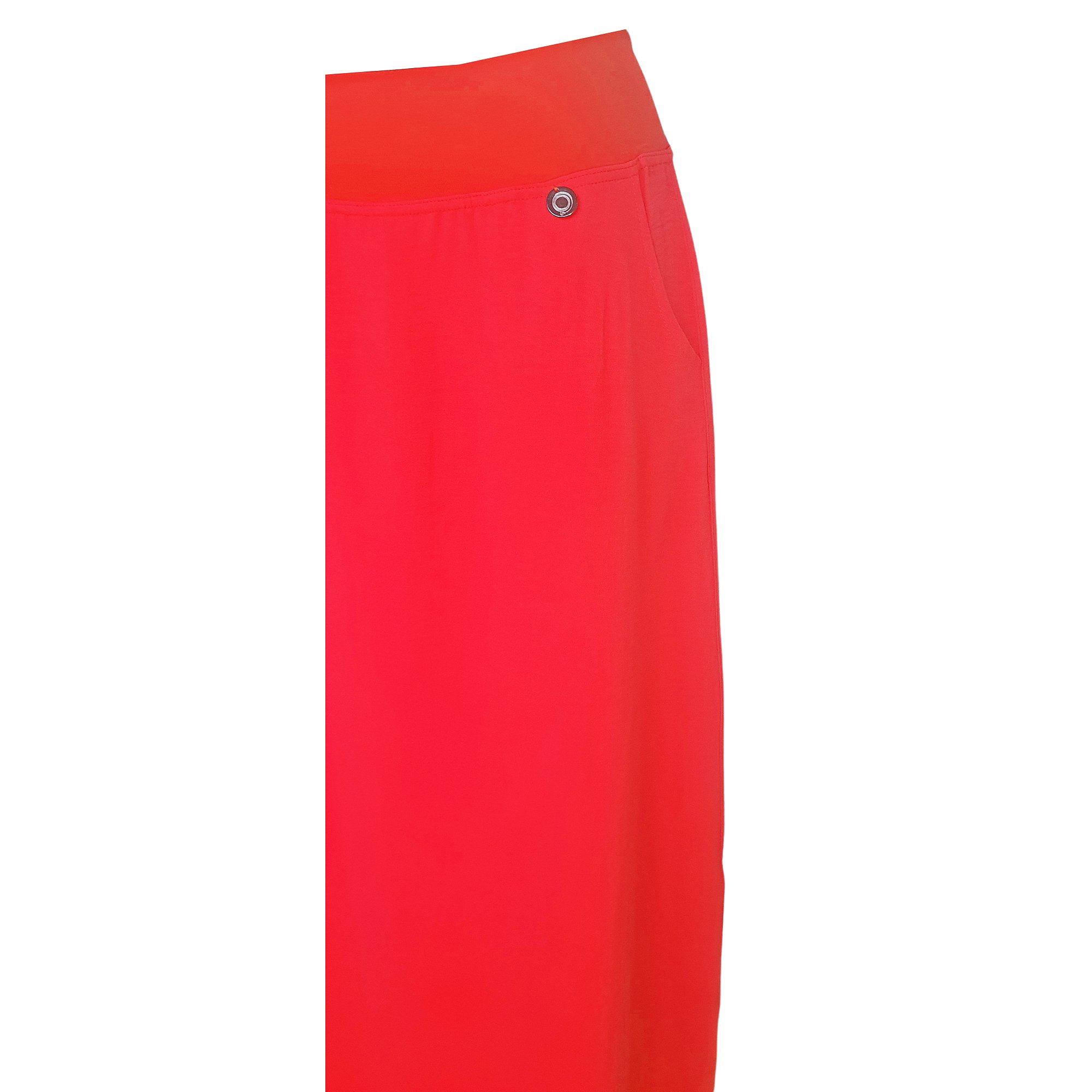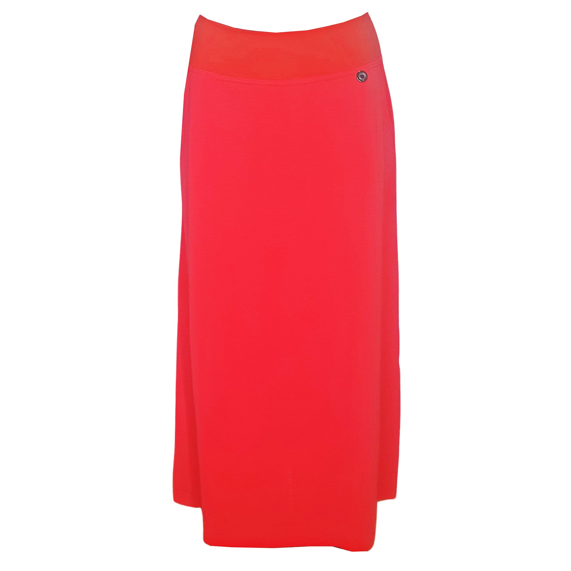 Dlouhá letní sukně v jasné lososové barvě s kapsami. Elastická pasovka v téže barvě. Délka 90 cm. Údržba - praní na 30° v pračce. Materiál: 95% viskóza 5% elastan