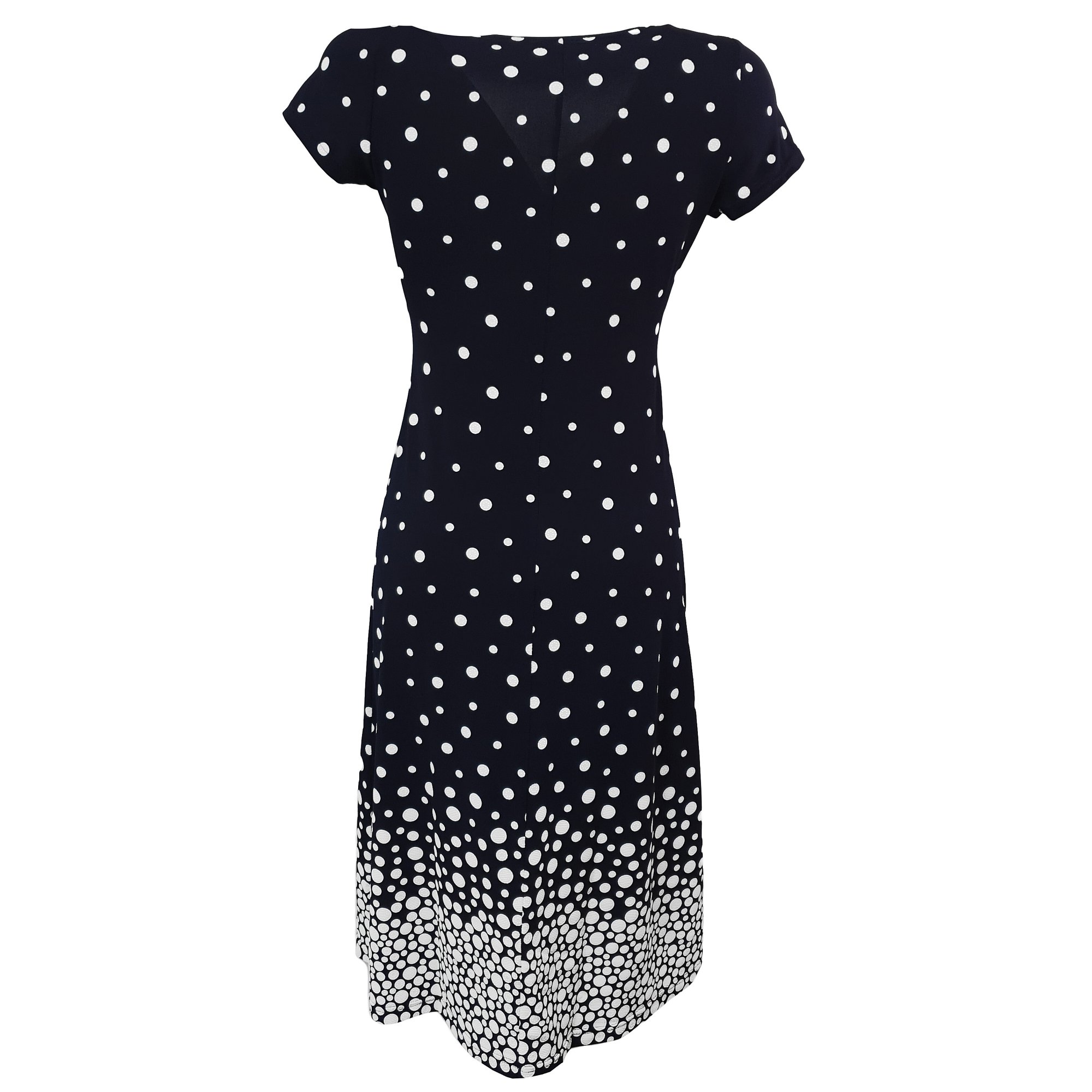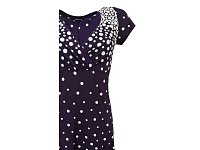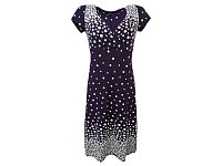 Letní elegantní modré šaty s bílým plastickým tiskem a. Přestřižené pod prsy a nařasené do krásného otevřeného srdcového výstřihu. Délka 105 cm. Pereme v pračce na 30°. 75% polyester 5% elastan