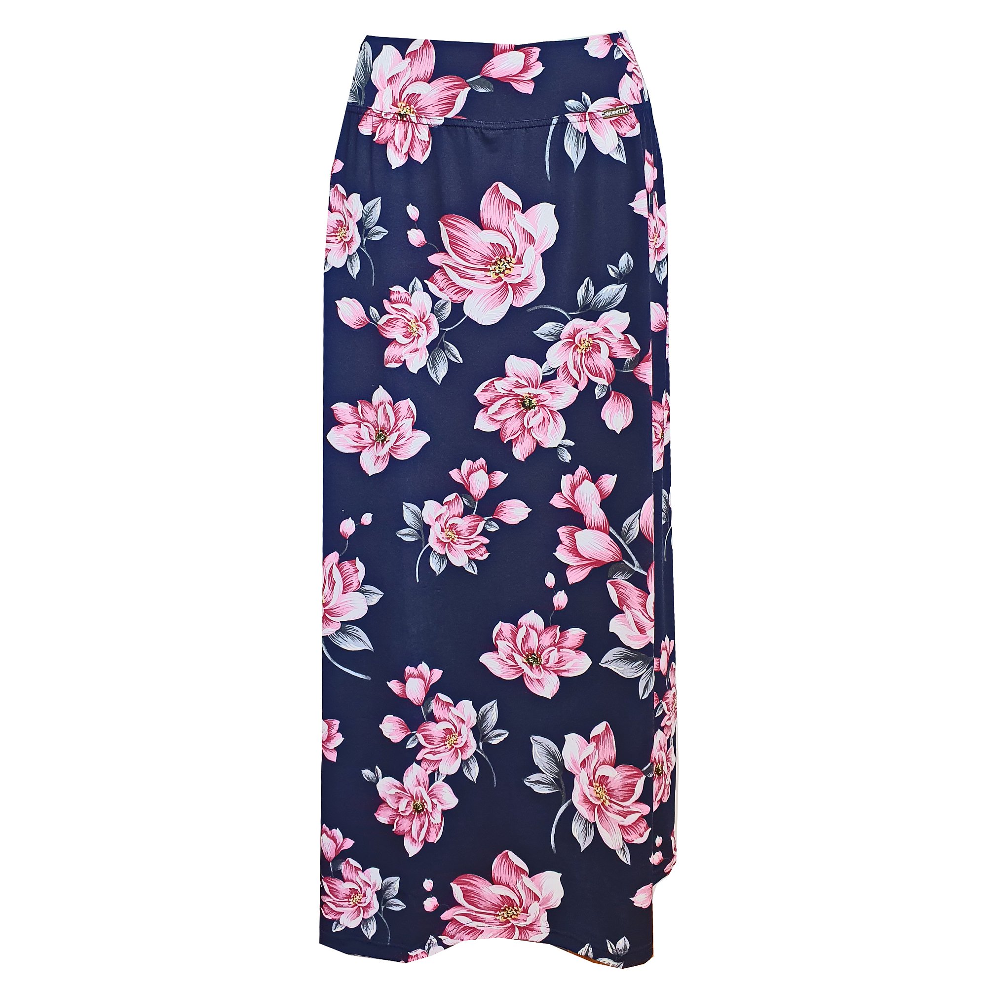 Dlouhá letní sukně s tiskem. Zajímavě řešená elastická pasovka. Délka 90 cm. Údržba - praní na 30° v pračce. Materiál: 95% polyester 5% elastan