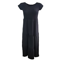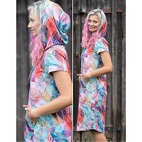 | Světlá tunika se stojákem a kapsami - vel.40 | Volná barevná halenka - vel.40 | Barevné šaty s kapucí - vel.38 | Dlouhé černé kaskádové šaty - vel.38 | |