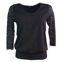 | Černá halenka s krajkou - vel.38 | Světlé šaty s krátkým rukávem - vel.42 | Černá halenka s véčkem - vel.42 | |