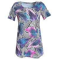 | Volné tričko v jahodové červené barvě - vel.40 | Modré volné triko s kimonovým rukávem - vel.38 | Růžovobílé triko s krátkými rukávy - vel.38 | Bílílá halenka s černým tiskem - vel.42 | Triko v pastelových barvách s krátkým rukávem - vel.38 | Tunika s výrazným tiskem listů - vel.40 | |