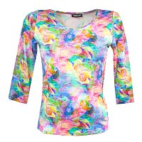 | Barevné šaty se širokou sukní - vel.38 | Barevné triko s 3/4 rukávy - vel.38 | Volná halenka s růžovým tiskem lístků - vel.40 | |