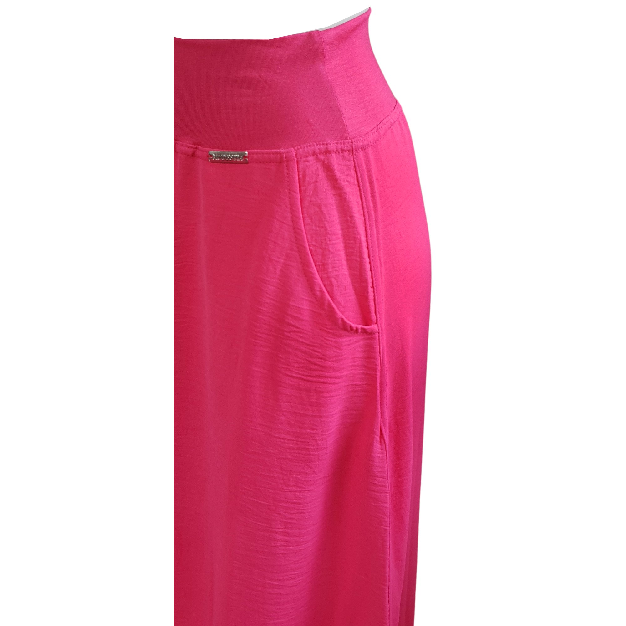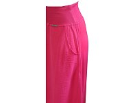 Dlouhá letní sukně v sytě růžové barvě s kapsami. Zajímavě řešená elastická pasovka. Délka 90 cm. Údržba - praní na 30° v pračce. Materiál: 95% viskóza 5% elastan