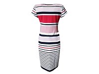 Růžovo modro bílé pruhované šaty - vel.44