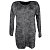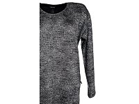 Svetr přes hlavu s dlouhým rukávem netopýřího střihu. Barva šedá s jemným zvířecím tiskem a s jemným leskem. Malý kulatý výstřih. Délka 75cm. Pereme v pračce na 30°. Materiál: 74% polyester 21% viskóza 5% elastan