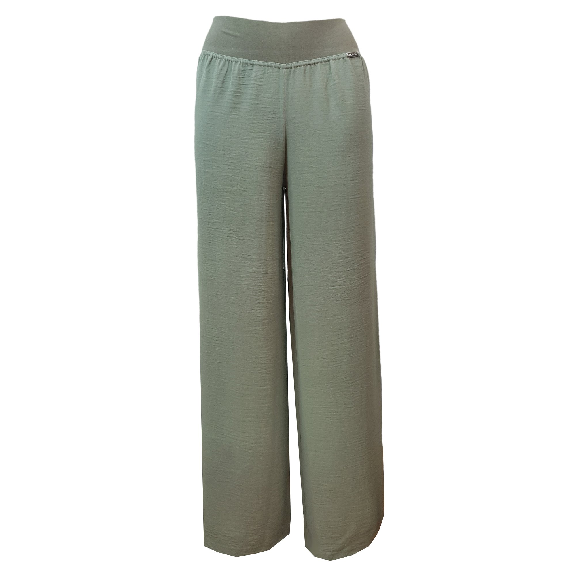 Letní pohodlné dlouhé kalhoty ze slabého materiálu v khaki barvě. V pase do elastické pasovky. Délka včetně pasu je 105cm. Šířka nohavice 31 cm. Pereme na 30°. 95% polyester 5% elastan