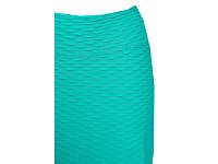 Krátká sukně ke kolenům s plastickým vzorem v krásné zeleno tyrkysové barvě. Elastická pasovka. Délka 54 - 57 cm dle vel. Pereme v pračce na 30°. Materiál: 95% viskóza 5% elastan