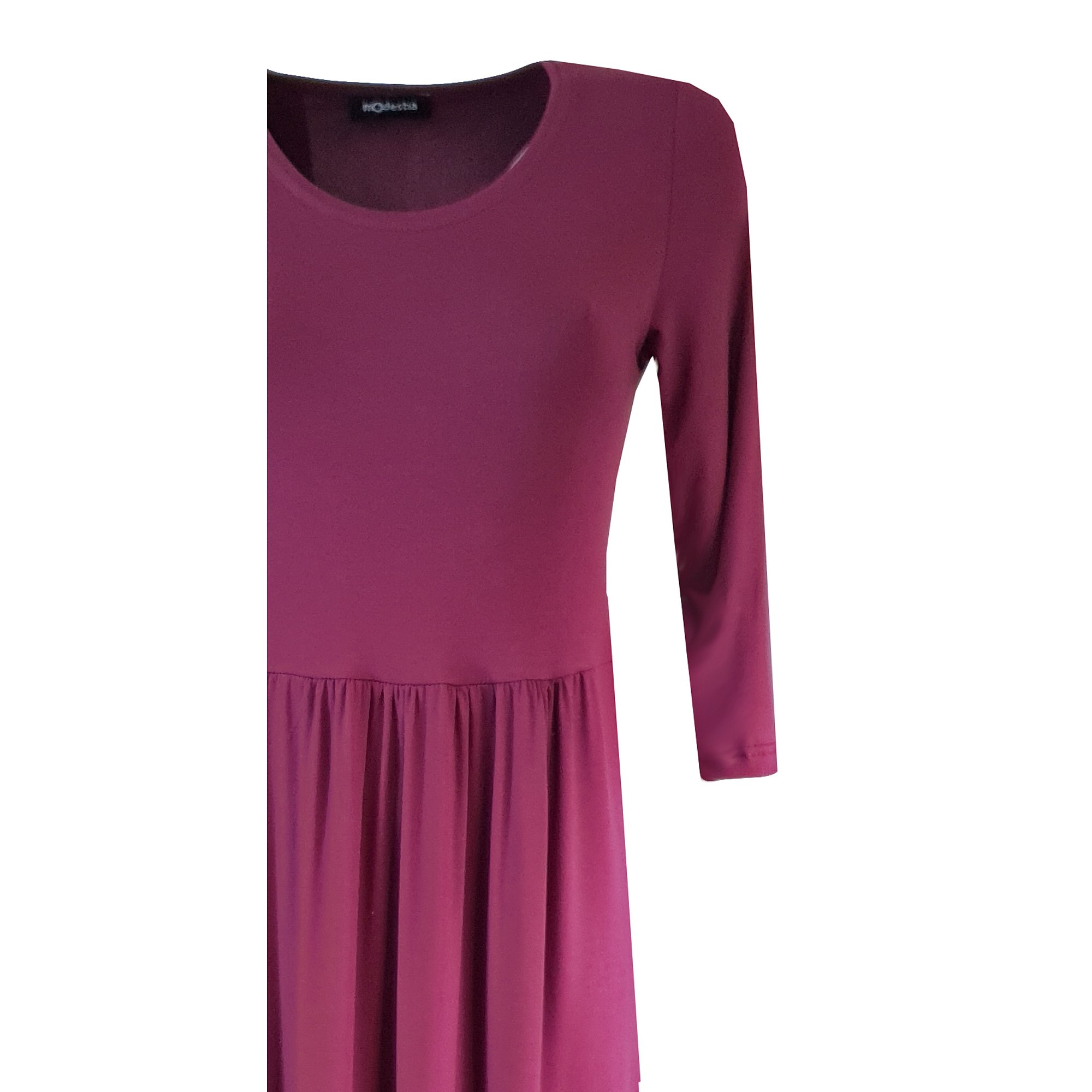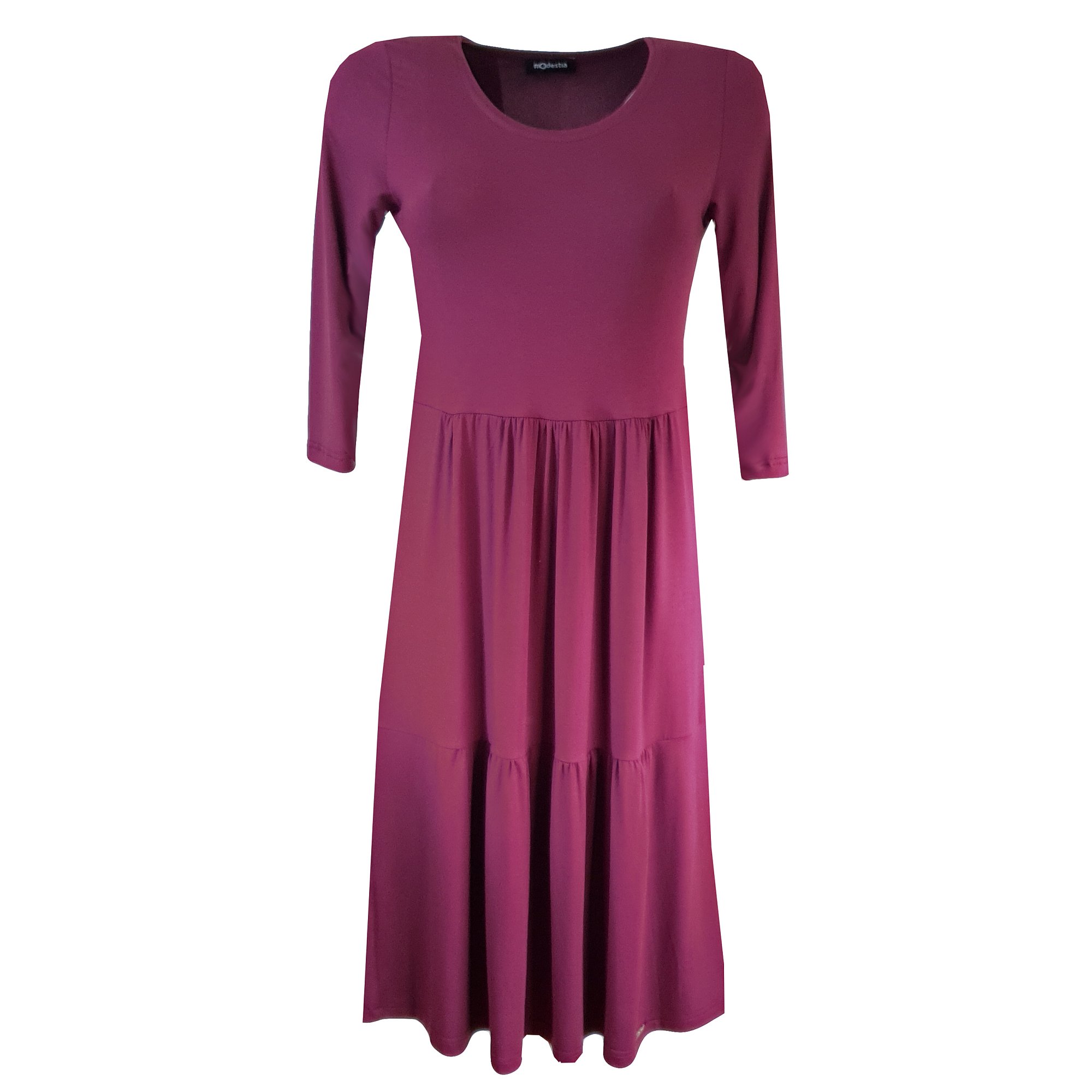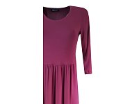 Slušivé šaty s 3/4 rukávem přestřižené pod prsy se dvěma kanýry ve vínové barvě, které i ve větších velikostech krásně zakryjí nedostatky postavy a přitom vyzdvihnou ženské tvary. Délka šatů je 100 cm. Údržba - pereme v pračce na 30°. Materiál: 95 % visk