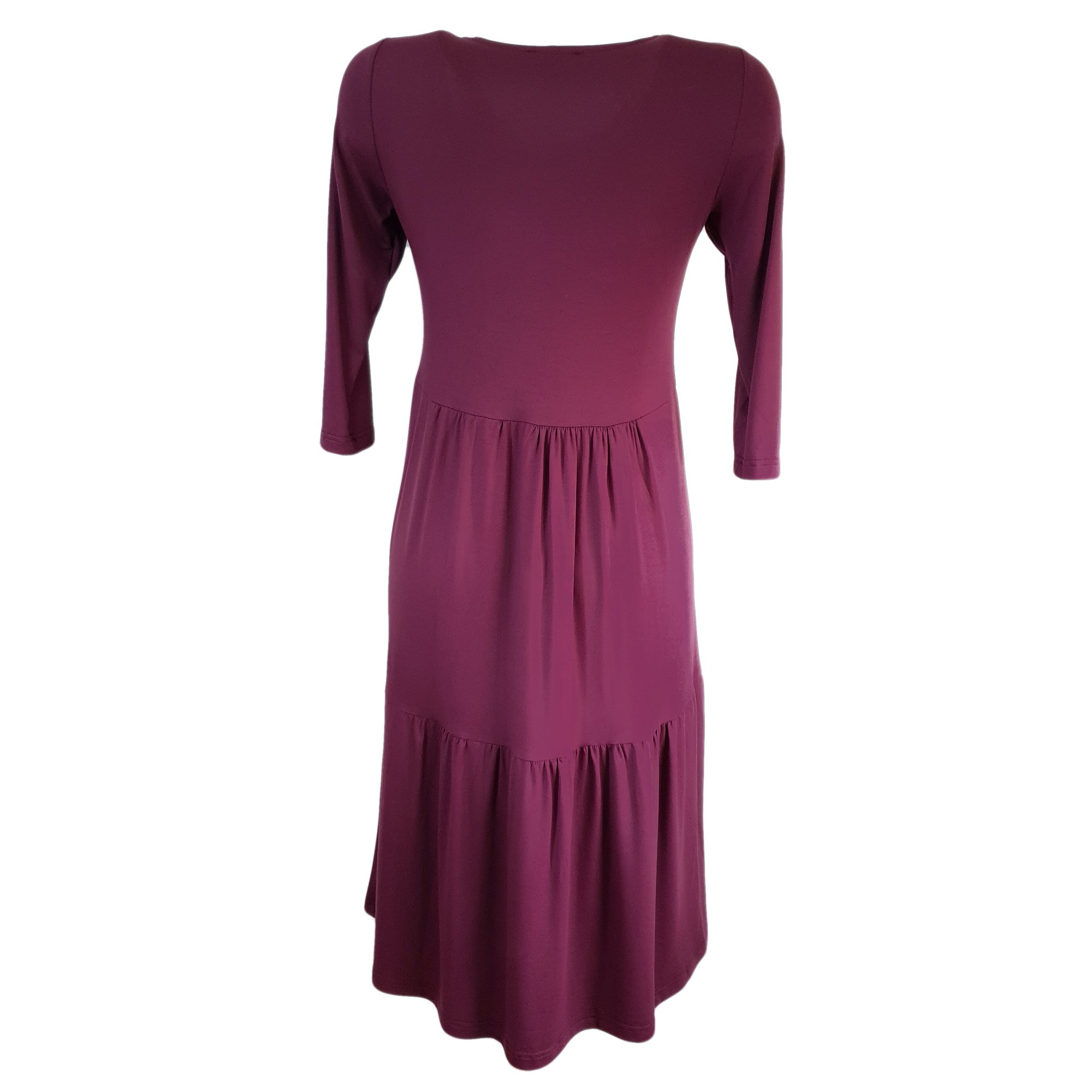 Varianta: Vínové kaskádové šaty s 3/4 rukávem - vel.50