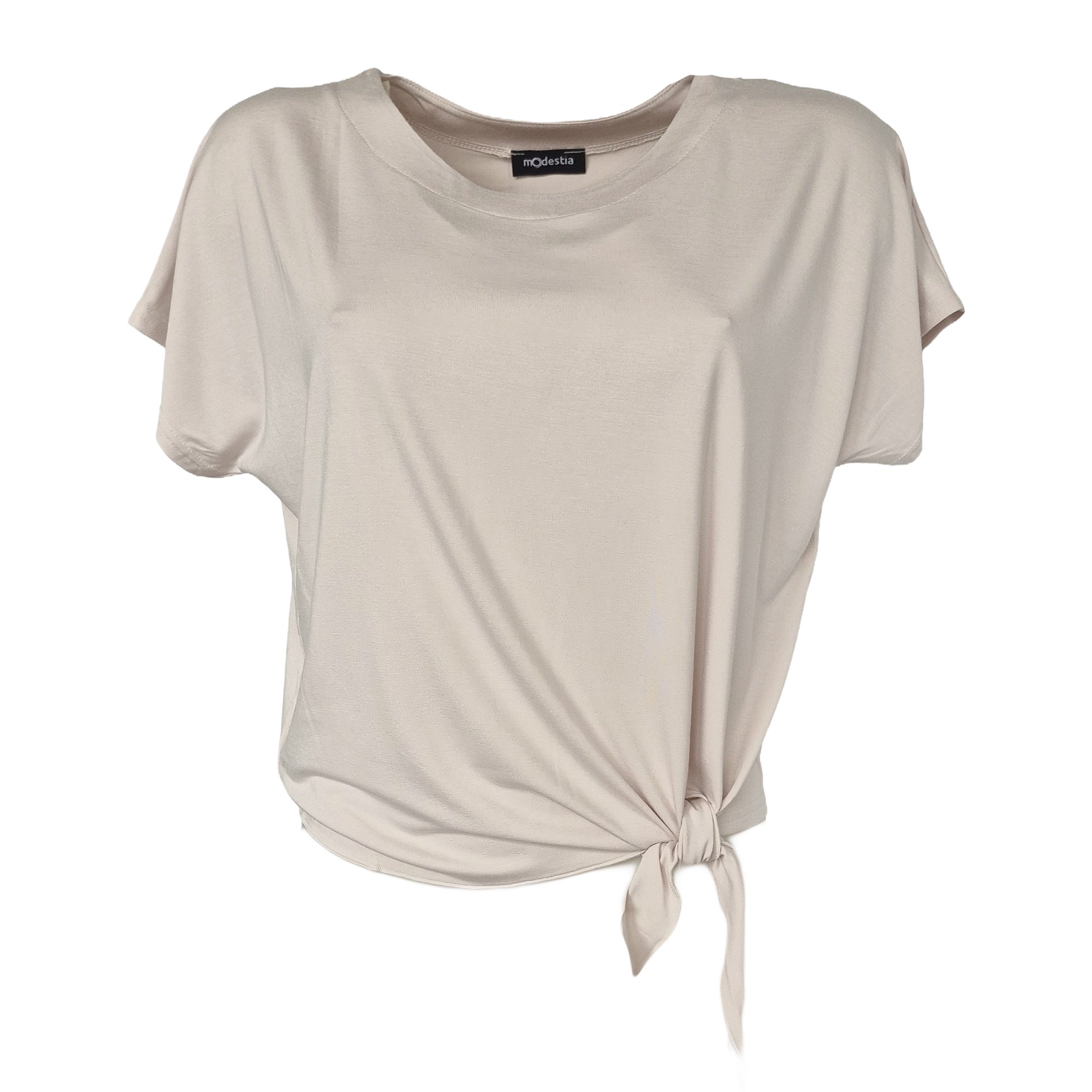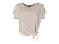 Pohodlné tričko s krátkým rukávem v smetanové barvě.Volný střih s efektním zavazováním na boku. Materiál: 95% viskóza, 5% elastan.
